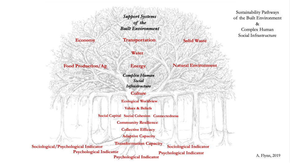 “My applied and theoretical research focuses on community and ecosystem resiliency, adaptive capacity, and transformational capacity of socio-ecological systems. My research centers on five select cross-cultural sociological and psychological indicators that multidisciplinary research suggests are the emergent drivers behind these concepts including the proliferation of sustainable development itself. Mv applied research was done within the context of climate action planning for a higher education institution, whereby I evaluated and assessed correlations of these cross-cultural indicators to the institution's greenhouse as emission footprint and mitigation efforts. These indicators were then increased with a 5-week training program I designed for "transformational learning" where we explored across multiple fields of study concepts to do with identity self, culture, cognition, communication, transformation of the self, perception, trauma, self-directed neuroplasticity, and emotional awareness. This enabled a shift in the participant's perspective of their subjective realities, identities, implicit biases, and limiting beliefs, all of which potentially keep community from interconnecting and moving forward powerfully in a transitionary process towards sustainability.”