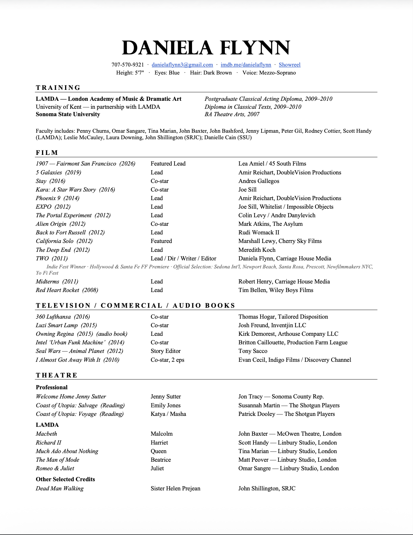 Skip to Videos All | 10/31/24 2025 Showreel 10/31/24 TWO (short-2011) At the close of World War II, a former SS officer confronts her heritage of lies. An award winning short and the official selection of 9 film festivals, (director, adaptation, editor, lead.)